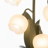 Unik Dekor: Den svarta, böjda stammen mot de ljusa blommorna gör denna bordslampa till ett unikt, konstnärligt blickfång.