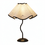 Dramatisk Siluett: Den unika, vågiga och plisserade skärmen med svart kant skapar en känsla av rörelse och romantisk dramatik, typisk för italiensk design.