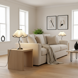 Mjukt Fokus: Ljuset filtreras genom den ljusa textilen, vilket skapar ett mjukt och varmt, välkomnande sken, perfekt för ett nattduksbord eller en byrå.