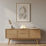 Skulptural Bas: Basen, som består av tre vertikala marmorpelare, gör lampan till ett konstverk som ger höjd och tyngd till din inredning.
