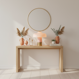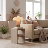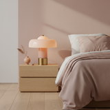 Jordnära Design: Tillverkad i vackert trä med en charmig svampform som skapar en lugn, nordisk och ombonad känsla i ditt sovrum eller hemmakontor.