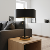 Tidlös Mid-Century design! Denna eleganta bordslampa kombinerar mattsvart med en lyxig, gyllene insida och bas. Höj lyxfaktorn direkt!