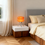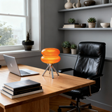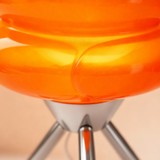 Äkta Ikon: Denna bordslampa är en hyllning till 60-talets djärva, organiska former. Den glänsande orangea/röda färgen och det smidiga kromat stativet skapar en energifylld och optimistisk känsla.