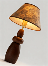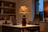 Tidlös Elegans: Den gedigna träfoten och den intrikata skärmen ger denna bordslampa en sofistikerad känsla av lugn och lyx.