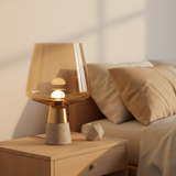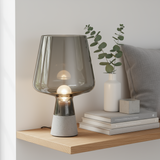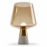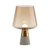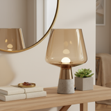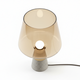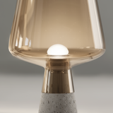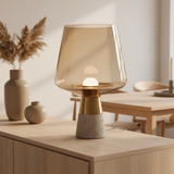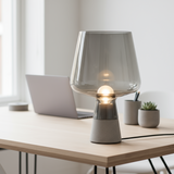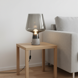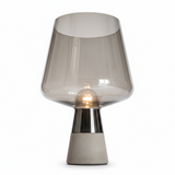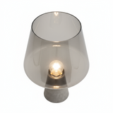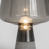 Råa material möter elegans! Denna unika bordslampa har en industriell betongbas och lyxigt rökfärgat glas. Ett konstverk!